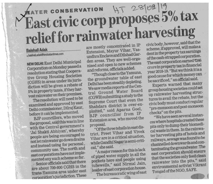It is therefore become essential to implement “Rain Water Harvesting “ , even the Govt. of Delhi recently announced and encouraged its implementation by offering Special 5% Tax Relief in addition to other Benefits like Water Conservation and Improving Overall Water Level.